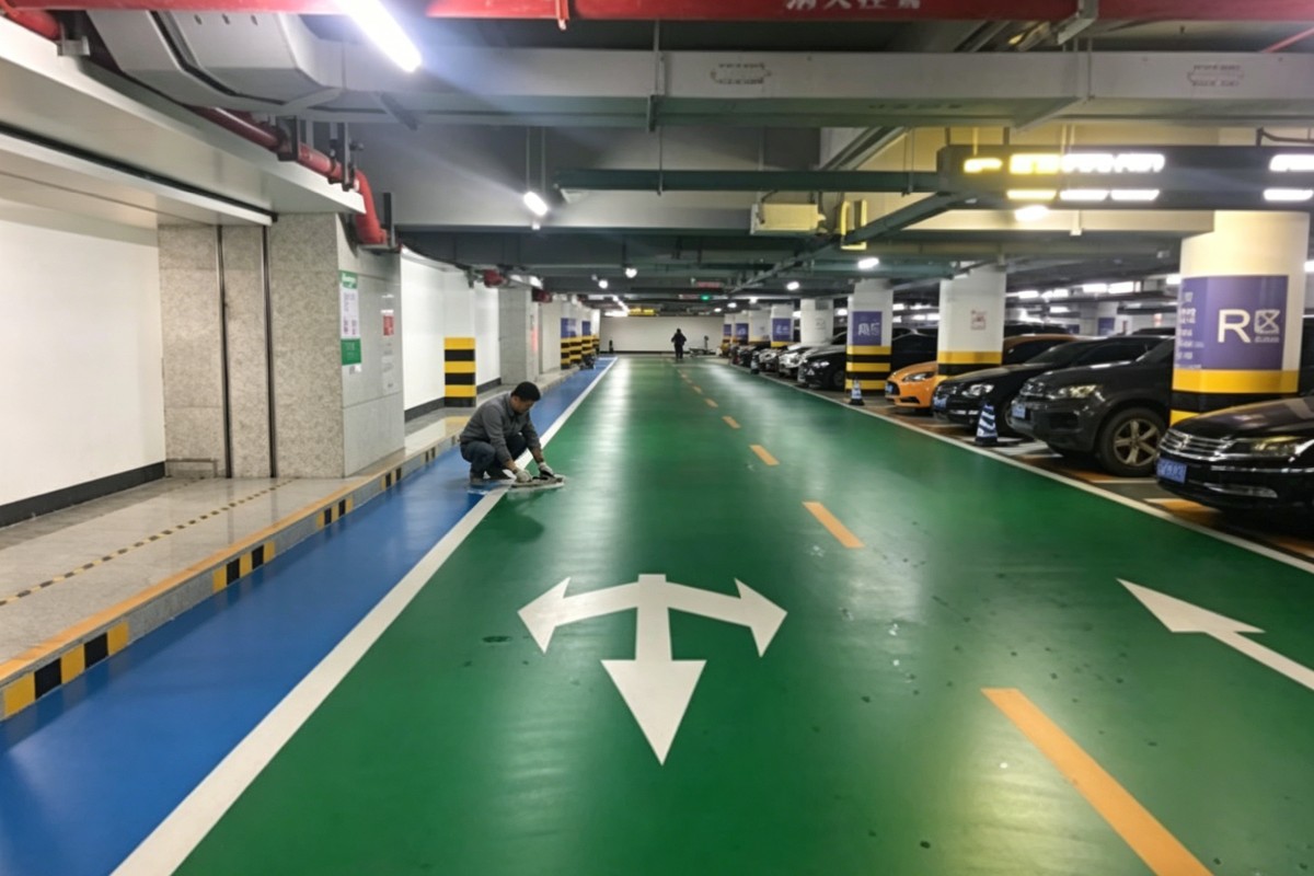 朝阳喀左冶金铸造工业园区停车场车库聚氨酯地坪施工厂家